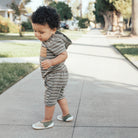 An elevated style for your trendy tot! Flat style with a color block look. These soft neutral tones & hint of olive green will be the highlight of their next steps.