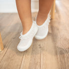 Wrap your little one's feet in elegance and comfort with Komuello's "Flat - Snow Lace." Designed in a classic flat style, these charming shoes feature a delicate lace ruffle around the ankle, evoking the soft beauty of freshly fallen snow. The all-white design pairs effortlessly with any outfit, making them ideal for special occasions or adding a touch of grace to everyday looks. With Komuello's signature flexible sole and supportive fit, these flats keep growing feet cozy and stylish all day long.